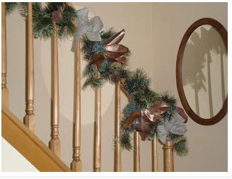 Since I really liked the family room stair treatment last year....I did almost the same thing again this year.But.....I realized that I have done the very same thing for too many years on the front stairway.....